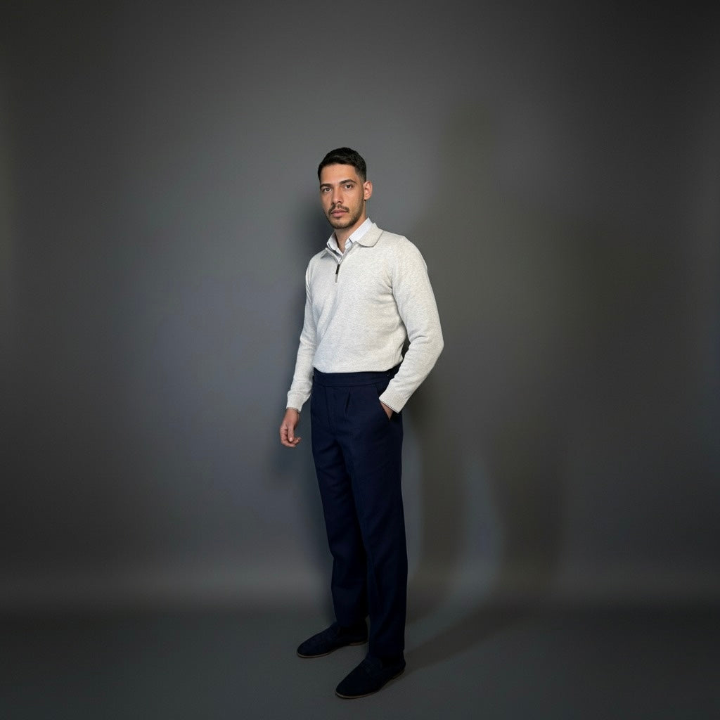 Light Grey Cotton Zipper Sweater Slim Fit